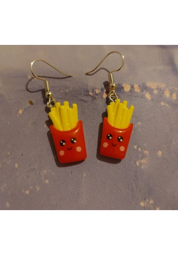 Earrings that are made to look like a box of chips. They have little faces on and blushy cheeks. They’re super lightweight making them perfect for everyone.