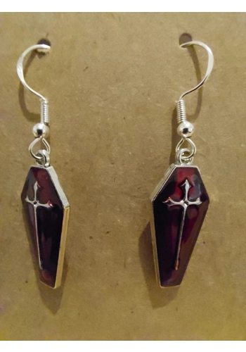 These red enamel coffins with silver plating along the back are ideal for the goths amongst us or to add to your halloween outfit. They’re small and lightweight making them easy to wear.