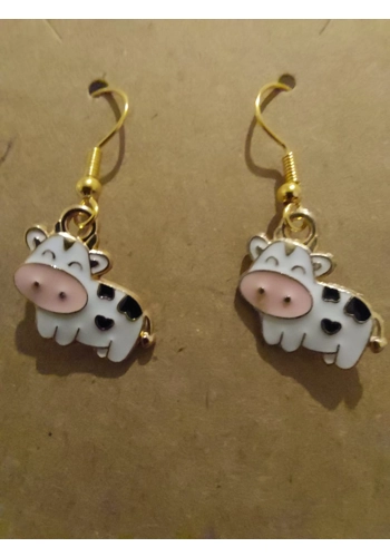 Enamel with a gold plated alloy on the back of the design and finished with gold plated ear wires. Suitable for anyone due to their light weight. The ear wires can be switched to clip-ons if needed.