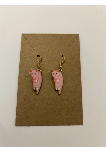 These kittens which are in the position that they would be held by mom made from an assortment of coloured enamel with gold plated ear wires to match the gold on the reverse of the enamel. These can be switched for clip-ons if required. The surface is shiny, smooth to the touch and non-toxic.