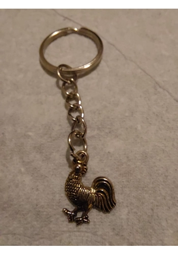 A keyring with a silver rooster. These rooster charms made with fine workmanship, a smooth surface and are light in weight.